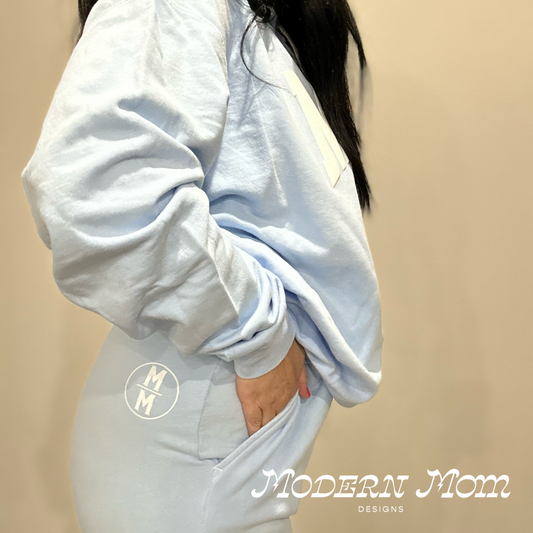 Lightweight MAMA puff print hoodie baby blue